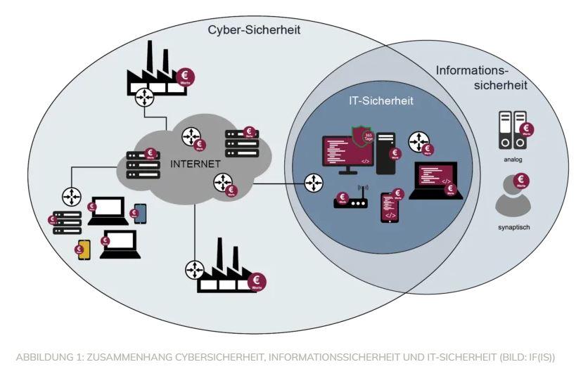 Exkurs - De­fi­ni­ti­on und Ab­gren­zung: Cy­ber­si­cher­heit, IT-Si­cher­heit und In­for­ma­ti­ons­si­cher­heit